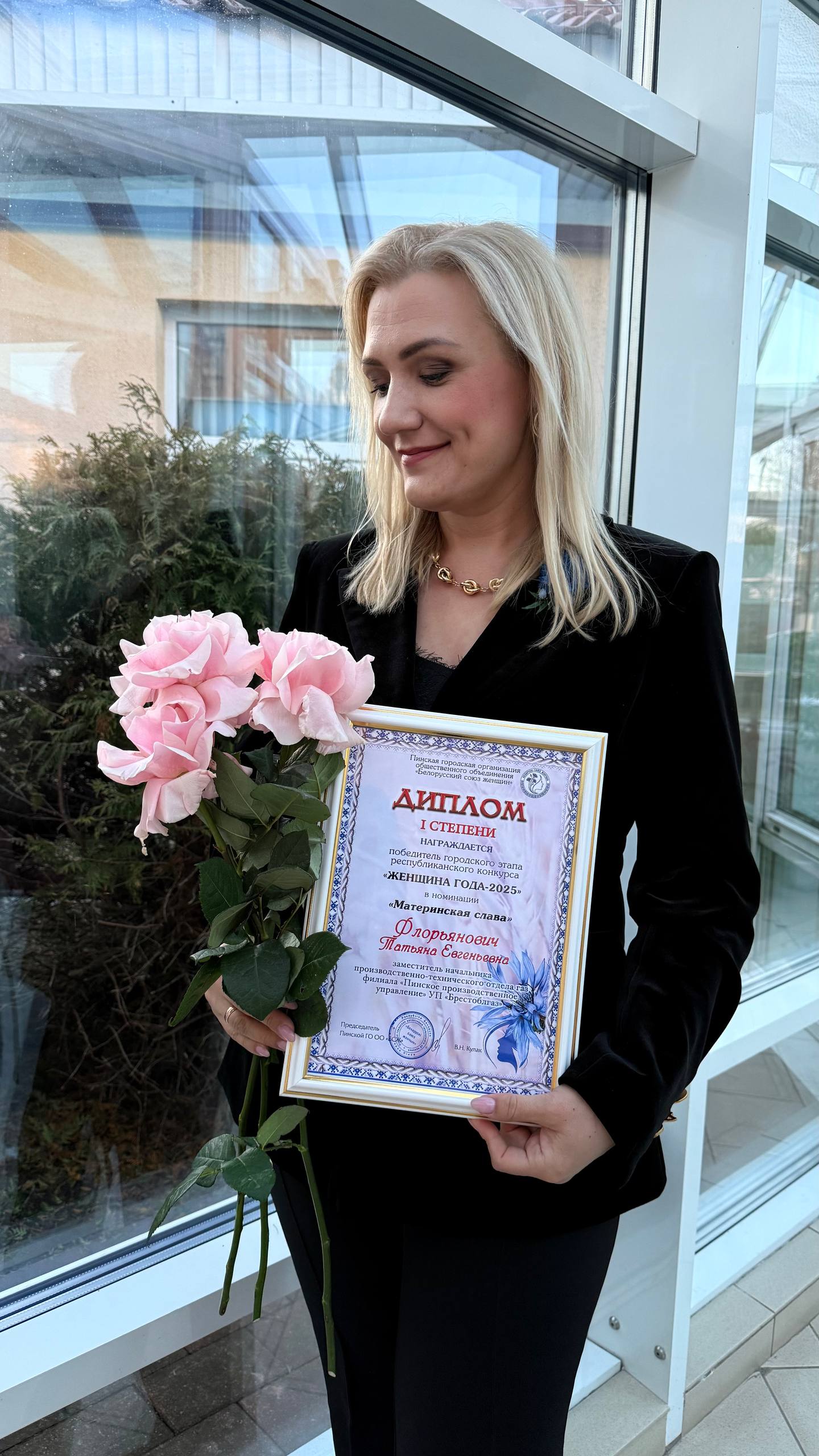 В городском этапе конкурса «Женщина года-2025» в номинации «Материнская слава» победительницей признана многодетная мама, заместитель начальника ПТО, председатель первичной организации ОО «БСЖ» в ПУ «Пинскгаз» Татьяна Евгеньевна Флорьянович (Диплом I степени)!