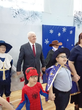 Учащиеся подготовили для гостей театрализованное представление, после которого они вместе со взрослыми и сказочными персонажами водили хоровод вокруг новогодней елки, танцевали и пели, создавая в школе-интернате волшебную праздничную атмосферу добра и чудес.