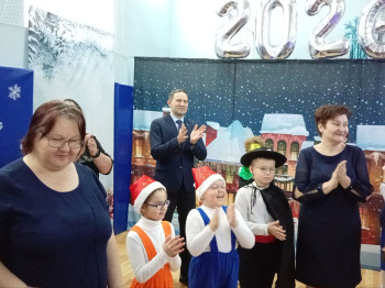 Руководители ознакомились с процессом обучения школьников, оснащением кабинетов, поздравили воспитанников учебного заведения с наступающим Новым годом, приняли участие в торжественном мероприятии и передали школе-интернату сертификаты на общую сумму более 11 тысяч рублей на приобретение техники для обучения детей.