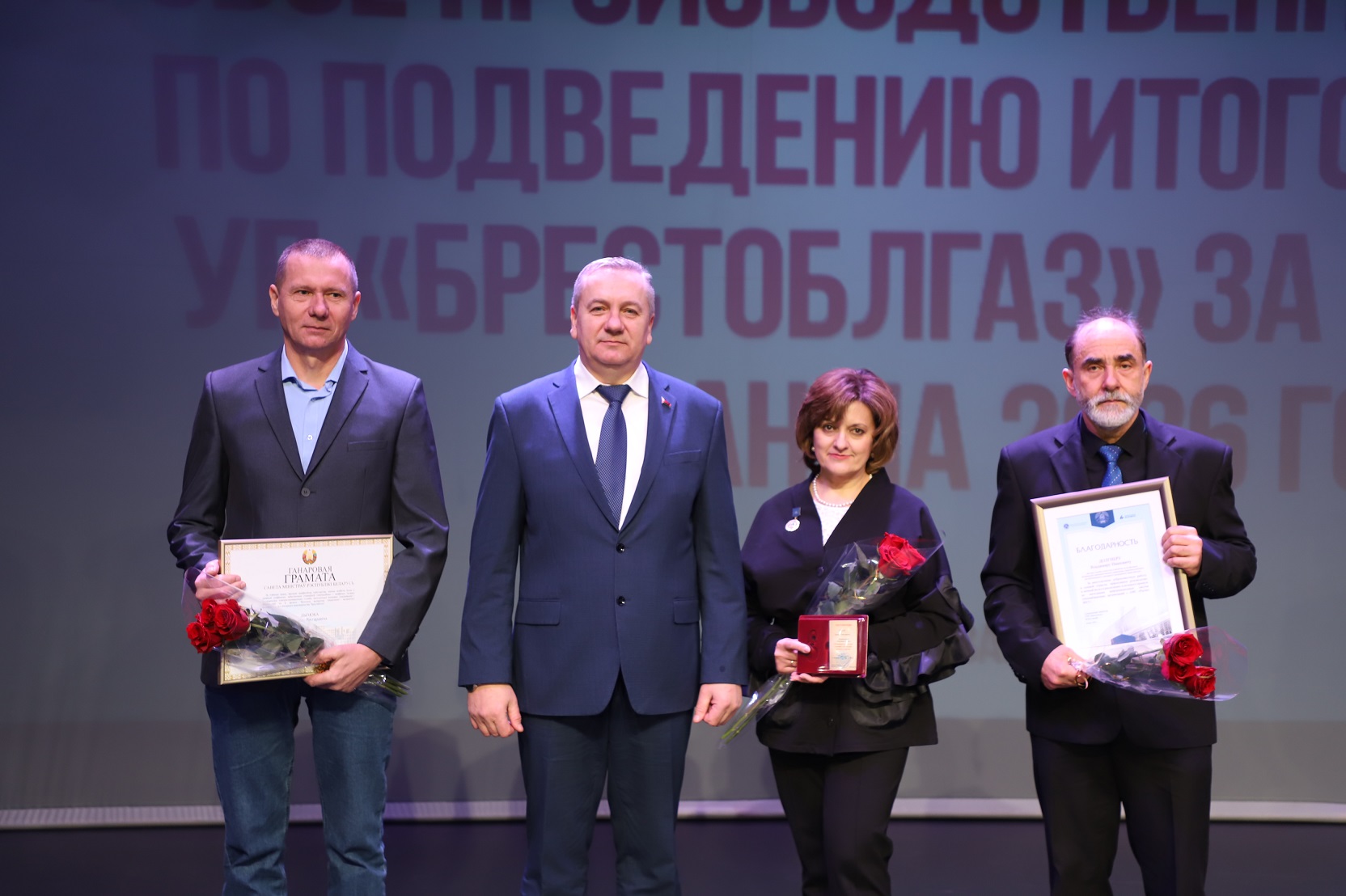 Работники УП «Брестоблгаз» были отмечены высокими наградами. В частности, Почетной грамотой Совета Министров награжден электрогазосварщик ПУ «Брестгаз» Андрей Дылюк, нагрудным знаком «Ганаровы работнiк газавай i паліўнай прамысловасці» ГПО «Белтопгаз» - секретарь приемной сектора документооборота и обработки корреспонденции отдела по информационному взаимодействию и контролю за делопроизводством УП «Брестоблгаз» Тамара Шпак, Благодарностью ГПО «Белтопгаз» - мастер службы учета газа и расчетов за газ ПУ «Кобрингаз» Владимир Долгиер.